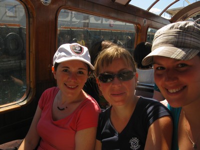 . V íčku jsme se dozvěděly, že trajekty tam jezdí každých 20 minut a že u „7 eleven“ si můžeme koupit běžné lístky