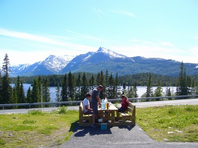 sem kolem 5.hod a zdrželi se dvě hodiny. Jsou tu dokonce i dva památníky věnované obětem stavby arktické dálnice, předchůdkyně E6 po které jsme jeli na sever. Stavěli jí jugoslávští a sovětští nacisty zajatí vojáci za 2. světové války. Rozhlédli jsme se