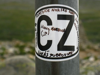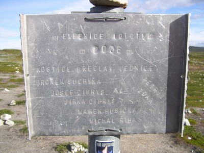 Expedice Lofoty 2006 a několik českých jmen a města kolem Břeclavi. Samotný sloupek byl polepený různými nálepkami, tak jsme přidali i svou a to „cézetko“