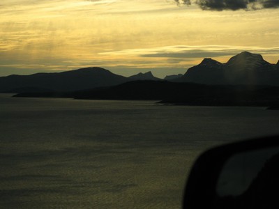 . Koukli jsme do mapy a rozhodli jsme se trochu pozměnit trasu. A ušetřit si 250 km cesty přes Narvik a přes Vesterály na Lofoty a střihnout to z Bognes přímo trajektem na Lofoty. Otázkou bylo jak často to jezdí. Za kolik a jak často jsme měli vytištěné ze stránek skandinávie.cz, ale neměli tam informace kdy to odjíždí. Dáme asi o 150 noků za auto víc než za trajekt po E6 ale to bychom asi projeli na benzínu