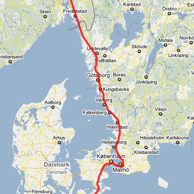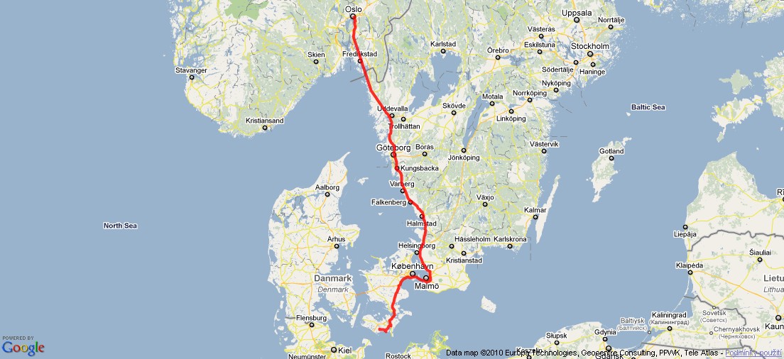 Z Dánska do Osla (přejezd přes most Oresund mezi Dánskem a Švédskem a bloudění v Oslo).