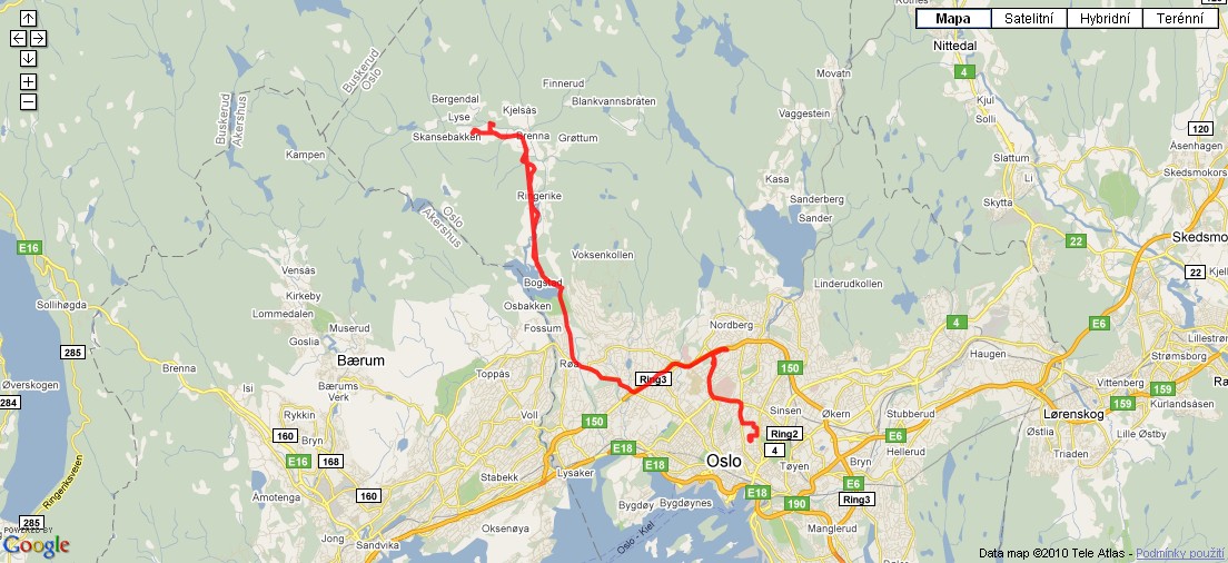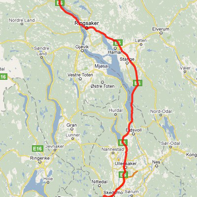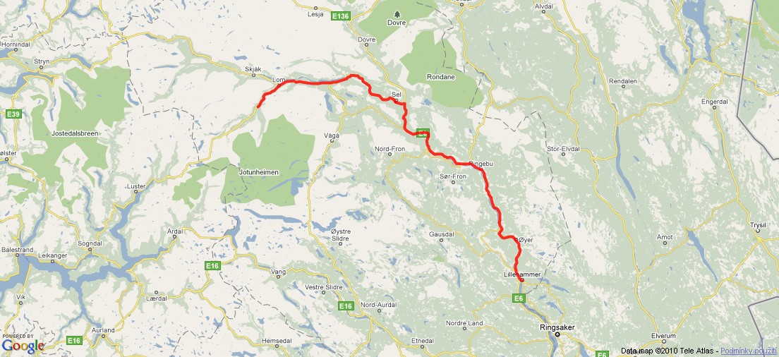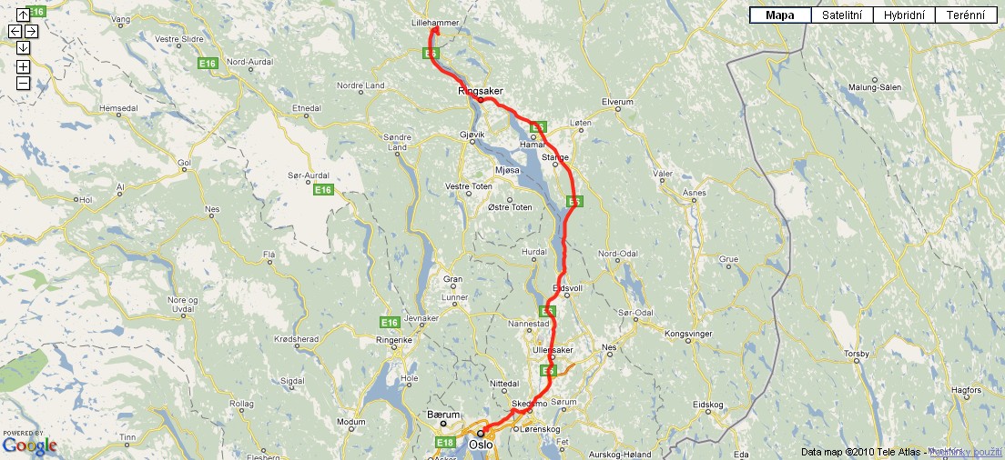 Cesta z Osla do Lillehammeru.