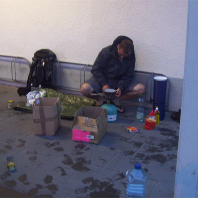 když jsme v dešti vařili u Lidlu pod stříškou