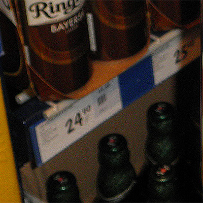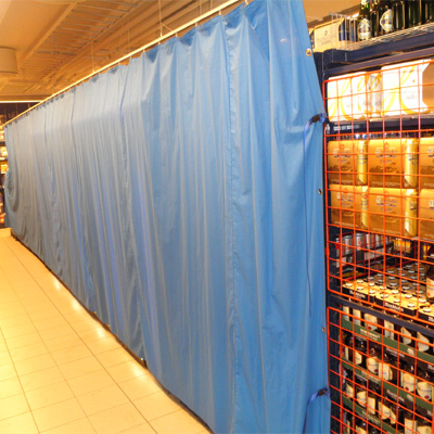 závěs kolem regálu piva a zamčená lednice s pivy po určité hodině