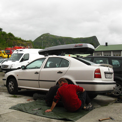 Norsko (průvodce Rough Guide a jejich úchvatné popisy; taky Lonely Planet a snad všechny další řady které se týkaly Norska). Kniha o tom jak vlci v lese rozsápali nějakou holku (to si četla Verča; nebylo to příliš vhodné čtení, protože jsme pořád jenom spali nadivoko venku, a párkrát i v lese)